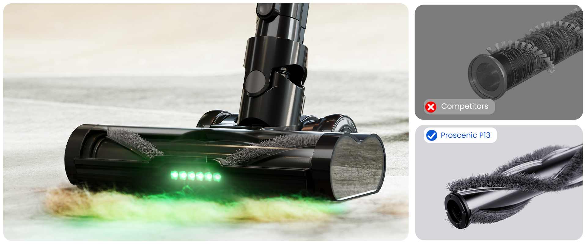 Ein herausragendes Merkmal des Proscenic P13 ist sein leistungsstarkes Saugsystem, das selbst feinste Partikel und Schmutzpartikel mühelos aufnimmt. Mit einer Saugkraft von beeindruckenden 35 kPa bietet dieser Staubsauger eine erstklassige Reinigungsleistung auf verschiedenen Oberflächen, von Hartböden bis hin zu Teppichen. Die motorisierte Walzenbürste gewährleistet eine gründliche Entfernung von Schmutz und Staub, während die verschiedenen Saugmodi eine individuelle Anpassung an die Reinigungsanforderungen ermöglichen.
