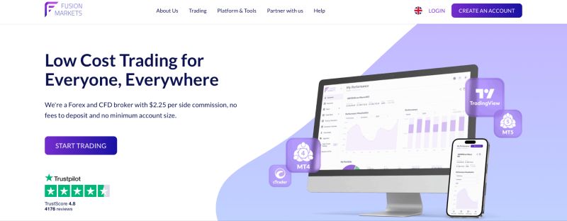 | 3. Fusion Markets | 90+ Forex-Paare sowie CFDs auf Rohstoffe und Aktien | iOS, Android, Web, MT4, MT5 | Spreads ab 0,0 Pips, keine Mindesteinlage, Multiwährungskonten |