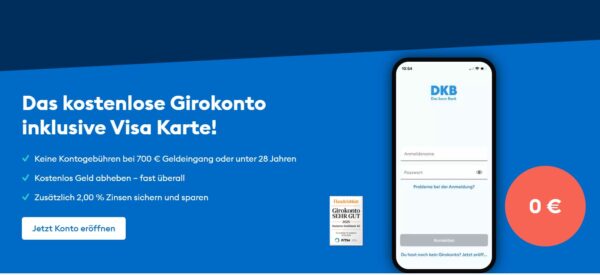 - Kostenloses DKB Girokonto + Visa Debitkarte