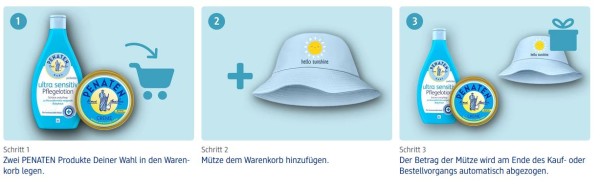 - dm Drogerie: gratis Sommer-Kindermütze beim Kauf von 2 Penaten-Produkten