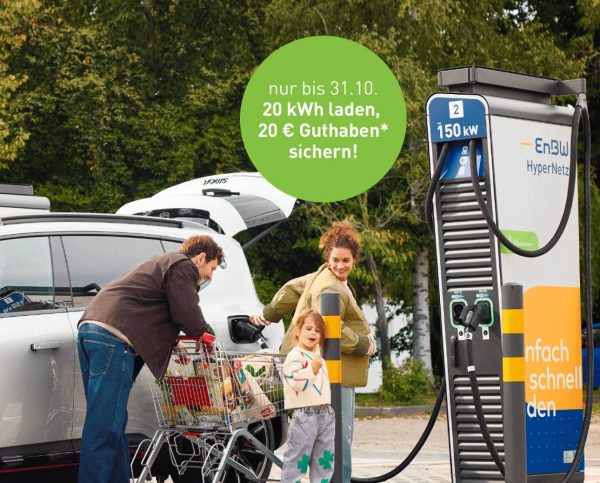 - Bis zum 31.10.2025 mind. 20 kWh an EnBW-Ladestationen laden