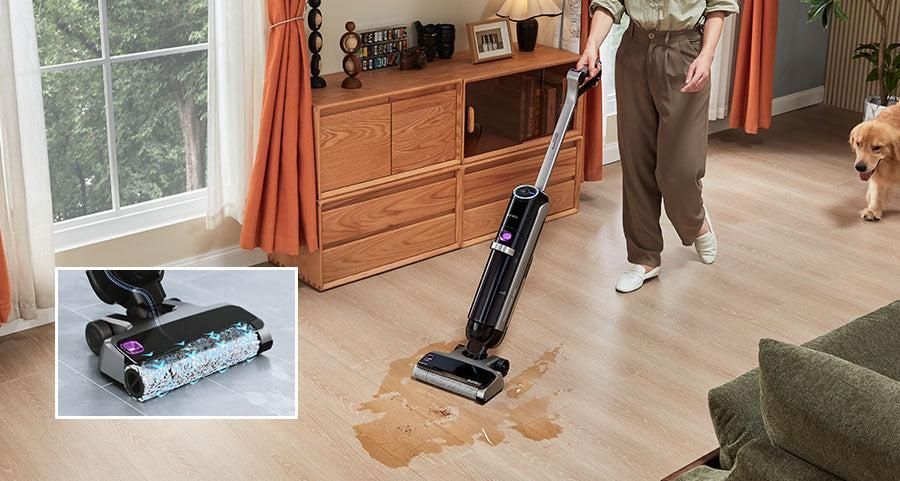 Auch feuchte Verschmutzungen werden zuverlässig aufgenommen. Gerade in Küchen oder Eingangsbereichen zeigt sich, wie praktisch die Kombination aus Saugen und Wischen sein kann. Flüssigkeiten und Schmutz werden in einem Schritt entfernt, ohne dass zusätzliche Reinigung notwendig ist.