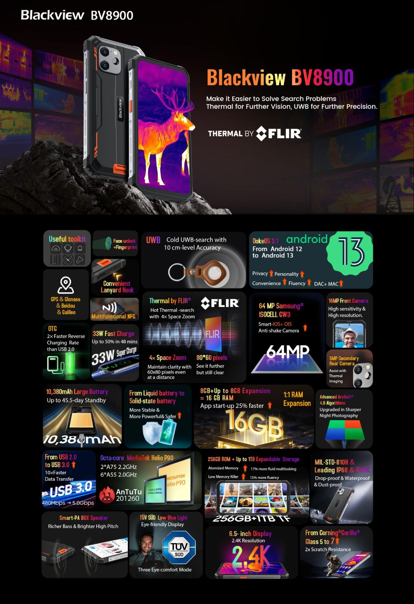 Als aufstrebende Technologiemarken ist Blackview für robuste Handys bekannt. Kürzlich hat das Unternehmen das neueste Flaggschiff-Rugged-Handy, das Blackview BV8900, vorgestellt. Es verfügt über eine verbesserte Wärmebildkamera, die zudem die erste ist, die UWB, ArcSoft® 4.0, einen 10.380mAh Solid-State-Akku und DokeOS 3.1, basierend auf Android 13, integriert.