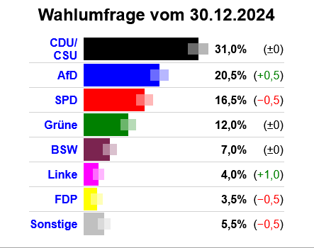 Während CDU (31 Prozent), AfD (20,5 Prozent) und SPD (16,5 Prozent) stabile oder steigende Werte verzeichnen, kämpft die FDP mit Bedeutungslosigkeit.