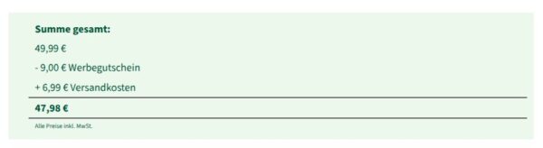 Um den besten Preis zu erzielen, nutzt ihr im Warenkorb den Gutscheincode dankemama. Damit reduziert sich der Preis für das gesamte Set um 10%. FloraPrima liefert pünktlich zum Wunschtermin, sodass ihr euch um nichts weiter kümmern müsst.