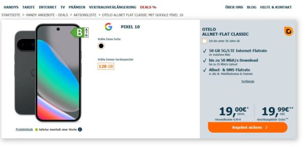 Bei LogiTel bekommt ihr zum Start in das Wochenende das Google Pixel 10 + 50GB 5G + Alles-Flat im Vodafone-Netz für 19,99€/Monat.