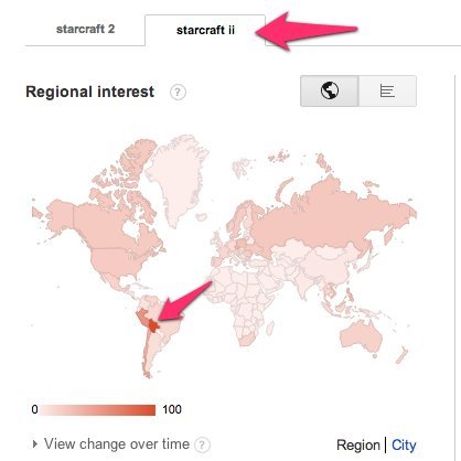 Wer Beispielsweise die Keywords “gta 5″ und “gta v” im Vergleich angibt, der wird feststellen, dass ersteres so ausschaut als würde es weltweit immer vor der Kombination mit der römischen Ziffer (v) liegen. Wer sich aber beispielsweise die Situation der beiden Suchworte in der Slowakei ansieht, der stellt fest, dass dort für einige Jahre die Verwendung der Suche mit der römischen Ziffer über derjenigen mit der arabischen Ziffer lag, bis ins Jahr 2011 hinein.