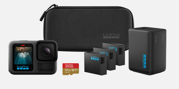 Dieses Bundle enthält die HERO13 Black sowie das Dual-Ladegerät, 3 Enduro-Akkus, eine 64 GB SD-Karte und eine Kameratasche.