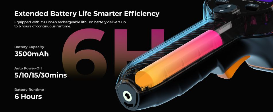 Integrierter 3500 mAh Lithium-Akku für bis zu 7 Stunden Dauerbetrieb – ideal für den ganzen Arbeitstag.