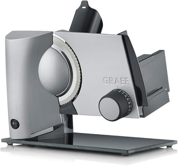 - Lieferumfang und Zubehör: GRAEF Allesschneider S32100 in silber, Wellenschliffmesser, Kombi-Aufsatz (Restehalter & MiniSlice in einem), Kunststofftablett, Bedienungsanleitung