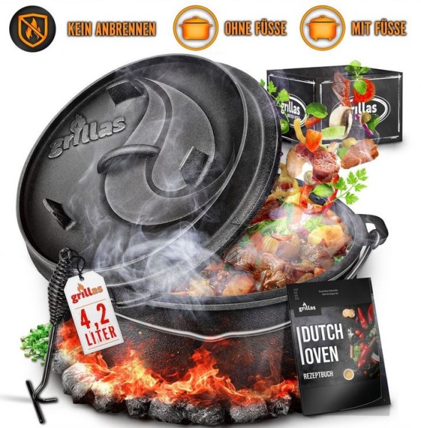 grillas Dutch Oven Set 4,2 Liter (Topf mit Deckel, Deckelheber, Rezeptheft) für 29,79€