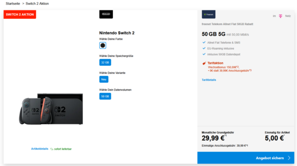 Nintendo Switch 2 + 50GB 5G + Alles-Flat im Telekom-Netz für 29,99€/Monat