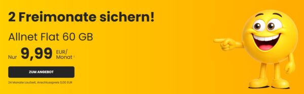 - 2 Monate GRATIS bei der 60GB Variante mit 24 Monaten Laufzeit