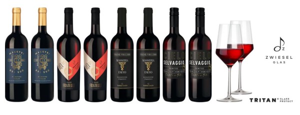 Hawesko Weinpaket „Primitivo-Vielfalt“ für 39,90€ – 8 Flaschen + 2 Zwiesel-Gläser