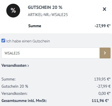 Die Versandkosten betragen 6,90€, entfallen jedoch ab 60€ Bestellwert.