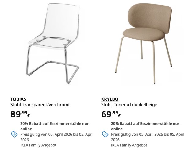 Ikea Sonntagsangebote: nur heute 20% auf ausgewählte Stühle (Ikea Family/Business)