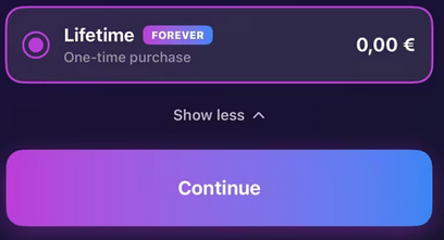 - Schritt 5: Wählt dort die Option „Lifetime“ für 0,00 € aus.