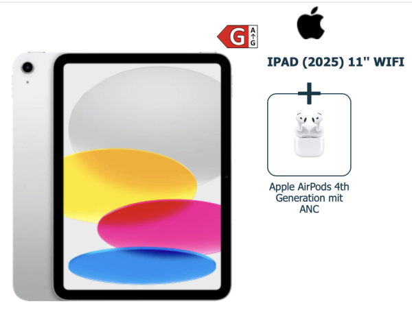 - iPad (2025) 11" Wifi + Apple AirPods 4th Gen mit ANC für einmalig 49€ im Otelo Allnet-Flat Classic mit 50 GB 5G/LTE für monatl. 19,99€ bei Logitel