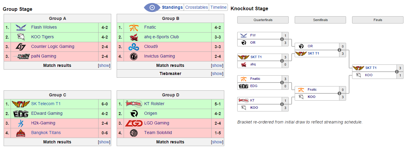 2,13 Millionen Dollar waren im Preis-Pool der Weltmeisterschaft. Eine schlappe Million davon ging an den Sieger. Auch wenn die europäischen Teams (Origen und Fnatic) den Einzug ins Finale knapp verpassten, haben es die KOO Tigers und die SKT nicht weniger verdient. Der dritte und vierte Platz ging zumindest mit einer Gewinnsumme von 150.000 US Dollar nach Hause. Verteilt wurde der Pool unter den besten 16 Teams. Die kleinste Gewinnsumme lautete über 25.000 Dollar.
