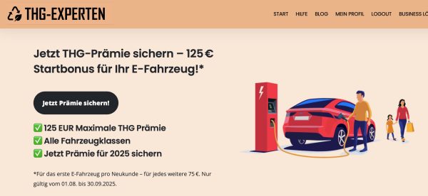 125€THG-Quote für Elektroauto kassieren für 2025 - Aktionszeitraum bis 10.11. - nur fürs erste E-Fahrzeug