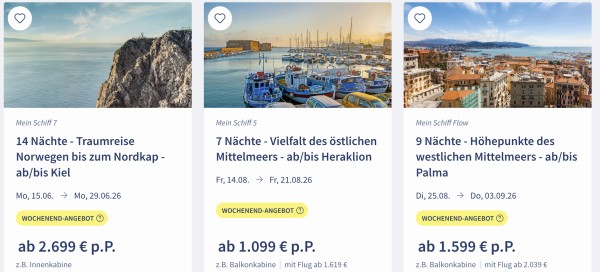 - Mein Schiff Wochenendangebote nur für kurze Zeit sichern