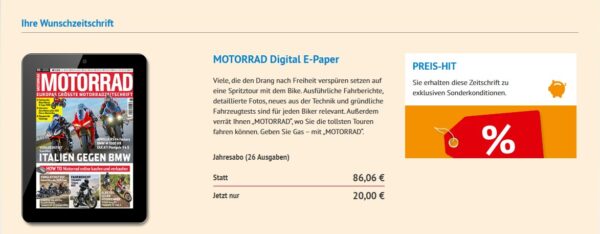 - Jahresabo MOTORRAD als E-Paper für 20€ (regulär 86,06€)