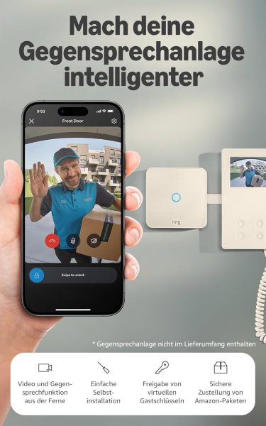 - SPRACHSTEUERUNG ÜBER ALEXA: Steuere die Ring Intercom mit Alexa-fähigen Geräten per Sprachbefehlen. Du hast gerade keine Hand frei? Beantworte die Gegensprechanlage oder entriegele den Gebäudeeingang per Sprachsteuerung.