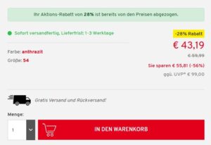 Der Versand wie auch eine eventuelle Retoure erfolgt kostenlos.