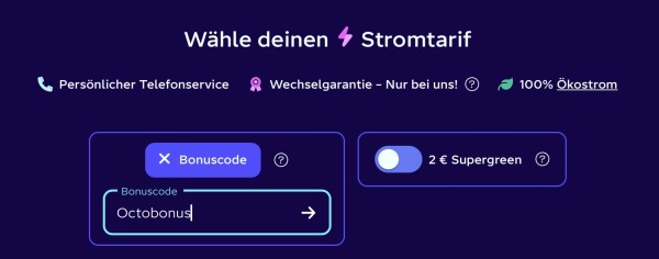 - Code: Octobonus gewährt 15% Rabatt auf die erste Jahresrechnung