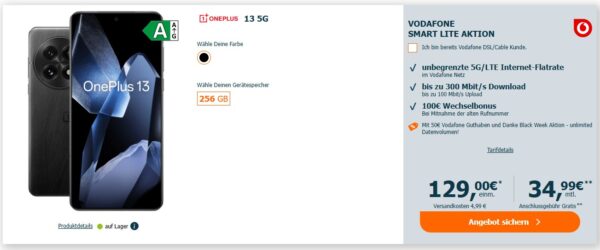 OnePlus 13 5G 256GB + Unbegrenztes 5G + Alles-Flat im Vodafone-Netz für 34,99€/Monat – eff. 2,28€/Monat