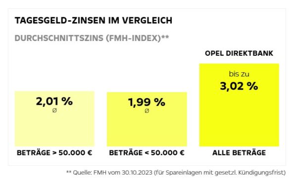 Opel Direktbank Tagesgeld mit 3,02% Zinsen p.a. (für 3 Monate, bis 1.000.000€)