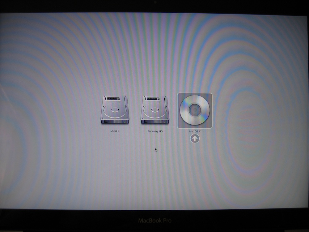 Um von der DVD oder dem USB-Stick zu starten, legt ihr das Medium ein und startet neu. Bevor der Apfel erscheint, drückt ihr die Wahltaste (auch bekannt als “Alt-Taste”) und wählt entweder die DVD oder den USB-Stick aus.