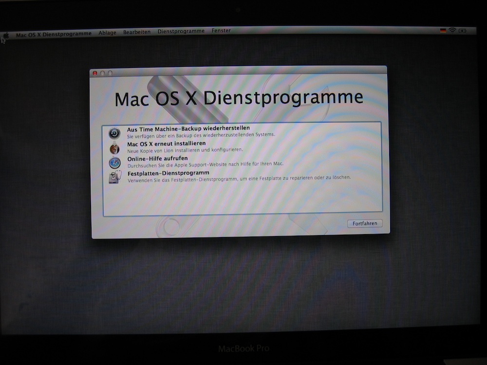Anschließend werdet ihr mit diversen Dienstprogrammen begrüßt, mit denen sich ein Mac retten oder neu einrichten lässt.