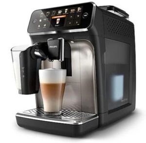 - Der Philips 5400 Series Kaffeevollautomat EP5447/90 bereitet aromatischen Kaffee aus frischen Bohnen zu – ob genussvoller Cappuccino, Latte Macchiato oder kraftvoller Espresso. Durch das intuitive Display ermöglicht er eine einfache Auswahl der Kaffeespezialität. Über den Kaffee Customizer lassen sich die Intensität sowie Kaffee- und Milchfüllmenge nach den persönlichen Vorlieben einstellen. Um dem Kaffee mit samtig-cremigem Milchschaum zu verfeinern, verfügt das Gerät über ein LatteGo Milchsystem mit Zyklon-Aufschäumtechnologie. Ausgestattet ist der Kaffeevollautomat mit einer Extra Shot-Funktion, durch die sich der Geschmack des Kaffees verstärken lässt.