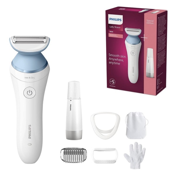 - Philips Lady Shaver Series 8000 (BRL166/91) Nass- und Trockenrasierer mit 5 Zubehörteilen & Gesichtshaarentferner für 47,90€ bei Amazon.de