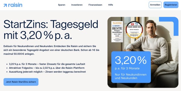 - Raisin Tagesgeld: 3 Monate 3,20% Aktionszinsen