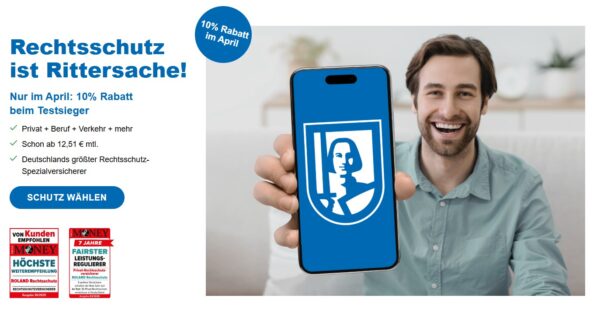 Bei ROLAND Rechtsschutz bekommt ihr gerade den Testsieger-Schutz für effektiv ab 12,51€ pro Monat inkl. 10% April-Rabatt