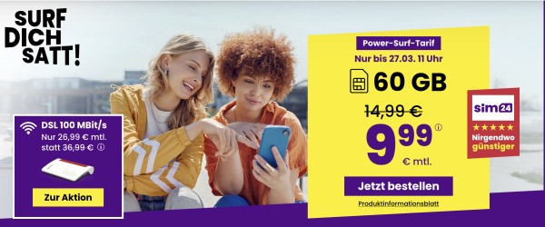 sim24: monatl. kündbare Drillisch-Tarife, z.B. 35GB für 5,99€ – Allnet inkl. 5G + SMS-Flat