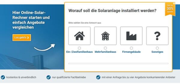 Habt ihr die Faxen dicke von ständig steigenden Strompreisen und wollt endlich eure eigene Energie produzieren? Bei Photovoltaik-Angebotsvergleich.de bekommt ihr aktuell bis zu 4 Angebote von Top-Solarfirmen komplett kostenlos (Vergleichspreis: oft mühsame Einzelanfragen) Ersparnis: 100% Zeit & bis zu 40% Projektkosten.
