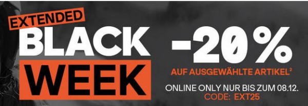 - Sportscheck extended Black Week mit 20% Extra-Rabatt auf viele ausgewählte Artikel