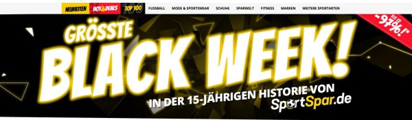 Auch bei Sportspar gibt es eine Black Week-Aktion mit vielen Angeboten.