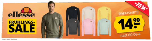 Neues Angebot von SportSpar, dort ist ein ellesse Frühlings-Sale mit Sweatshirts für 14,99€ (statt 60€) gestartet.