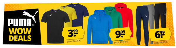 Bei den PUMA WOW DEALS von SportSpar erhaltet ihr nun zahlreiche Artikel des Herstellers ab bereits 2,99€