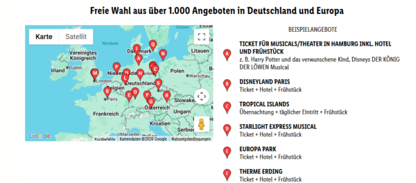 - Freie Wahl aus über 1.000 Angeboten in Deutschland und Europa