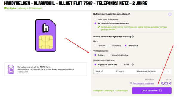 - Bonus: Rufnummernmitnahme kostenlos möglich