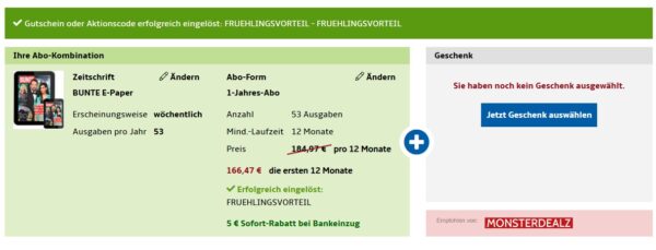Bei Hobby + Freizeit gibt es das BUNTE E-Paper Jahresabo für 161,47€ + bis zu 155€ Prämie.