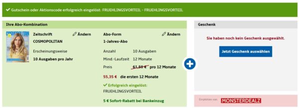 *SUPER* COSMOPOLITAN Jahresabo für 50,35€ + bis zu 50€ Prämie