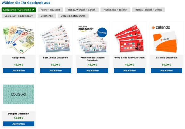 Diese Prämien stehen zum Beispiel zur Auswahl:
