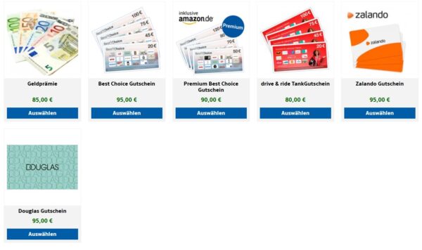 Diese Prämien stehen zum Beispiel zur Auswahl: