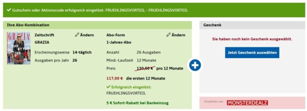 *SUPER* GRAZIA Jahresabo für 112€ + bis zu 110€ Prämie
